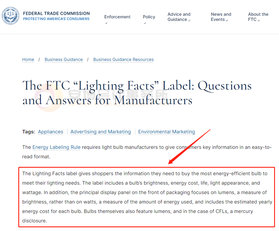 As required by the Federal Trade Commission (FTC) of the United States, the "Lighting Facts" label should be affixed to the lamp body and packaging box for LED lights to be sold in the US market, providing consumers with information about how to buy the most energy-efficient bulbs to meet their lighting needs.