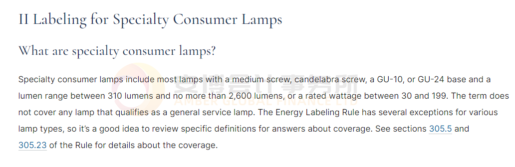 2. Special consumer lamps: Most medium screws, candlestick screws, u-10 or u-24 bases, lamps with lumens ranging from 310 lumens to not more than 2,600 lumens, or lamps rated from 30 to 199 watts.